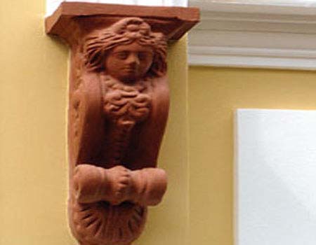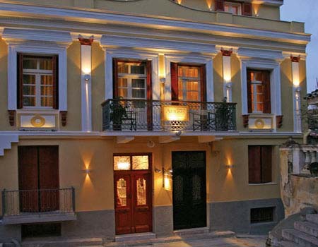 Τα φουρουσια που κοσμουν την προσοψη κατω απο τα παραθυρα και τα μπαλκονια, το ανθεμιο που διακοσμει την κορνιζα, τα κιονοκρανα που στολιζουν τις γωνιες, ο μαιανδρος κατω απο την περιτεχνη κορνιζα του κτιριου αλλα και τα ακροκεραμα της στεγης χαρισαν τα ονοματα τους και την ιστορια τους στα πεντε απεριττα πολυτελη φιλοξενα δωματια αυτου του υπεροχου ξενωνα. Ανεβαινοντας την δρυινη σκαλα ενα κομματι του ιστορικου σκηνικου στο φοντο ενος Βενετσιανικου καθρεπτη κεντριζει το βλεμμα του επισκεπτη, ΤΟ ΑΕΤΩΜΑ εκεινο το αρχιτεκτονικο στοιχειο που εδωσε και το ονομα του στο κτισμα, αγκαλιαζει τις πορτες των δυο πολυτελων δωματιων του Κιονοκρανου και του Μαιανδρου.