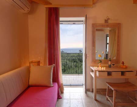 Η Suite είναι διόροφη με εσωτερική σκάλα, διαθέτει δύο μπάνια και φιλοξενεί 4-5 άτομα.