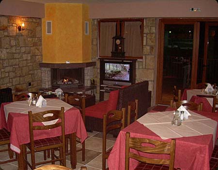 Επίσης, ο ξενώνας μας, διαθέτει ένα πλήρως εξοπλισμένο εστιατόριο-καφέ όπου συνδυάζει την γεύση και την ζεστασιά του τζακιού με την πανοραμική θέα.