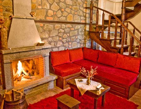 Όλα τα οικήματα διαθέτουν υπέροχα διακοσμιμένη σάλα με παραδοσιακά ξύλινα έπιπλα, τζάκι και εσωτερική σκάλα που οδηγεί στο υπνοδωμάτιο, με το δικό του μπαλκόνι και μπάνιο.