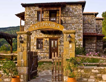 Οι κατοικίες Τ’Ασπρολίθια έρχονται να ανταποκριθούν και στα δύο με τον καλύτερο τρόπο. Τριάντα χιλιόμετρα έξω από την πόλη της Καρδίτσας και πιο συγκεκριμένα στο χωριό Καλύβια Φυλακτής, σε υψόμετρο 850 μέτρων, ξεπροβάλουν αρχοντικά πάνω στην πλαγιά οι έξι πέτρινες κατοικίες.