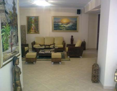 Στον ισόγειο χώρο υπάρχει η ρεσεψιόν, σαλόνι υποδοχής με έθνικ στοιχεία , εσωτερικός και εξωτερικός χώρος για πρωινό , καθώς και εξωτερική πισίνα.